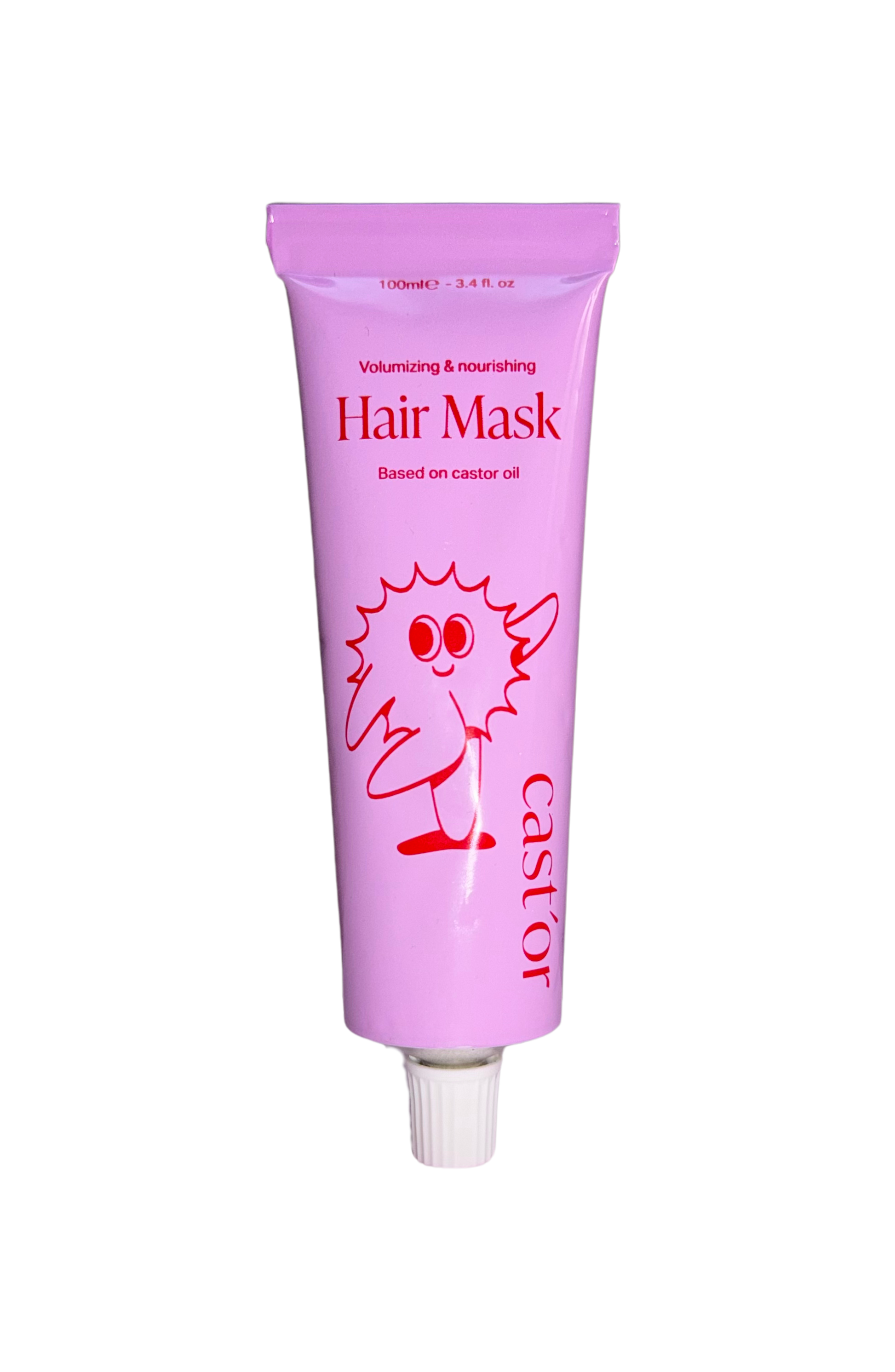 Volumizing and nourishing hair mask powered by castor oil, suitable for all hair types.